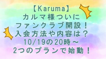 エンタメ 【Karuma】カルマ教ついにファンクラブ開設!入会方法や会費 内容は?10/19の20時~2つのプランで始動! こんにちは、管理人のラッコです!俳優としても活躍のイケメンKaruma(カルマ)さんがインスタライブで「ファンクラブ開設」という嬉しい報告をしてくれました!ファンの子から貰った服をきての報告ライブでした♡ファンからも7年?待ちわびたFC開設... 2025.10.14 エンタメ音楽・俳優・アーティスト情報