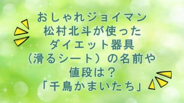 ドラマ・映画・テレビ番組 【何?】おしゃれジョイマン松村北斗が使った野呂佳代のダイエット器具(滑るシート)の名前は? こんにちは、管理人のラッコです。10月15日の「千鳥かまいたちゴールデンアワー」ではダイエットにつての特集だったのですが、「ダイエットはつらいよ大賞」の審査員として出演した松村北斗さんが、千鳥に〝おしゃれジョイマン〟と言わしめた面白いシーン... 2025.10.15 ドラマ・映画・テレビ番組