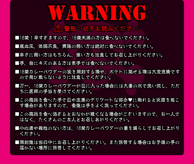 商品名「18禁カレーチップス」※タバスコの200倍の辛さ!