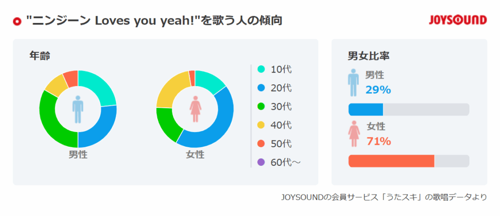 下の図をみると、3割は男性が歌っていますね!男女ともに人気の曲と思われます(^^)/