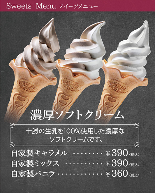 幅広く品揃え、オリジナルのソフトクリームも販売)