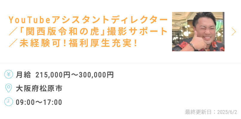 令和の虎の動画制作などをする社員を募集していますね! ☟