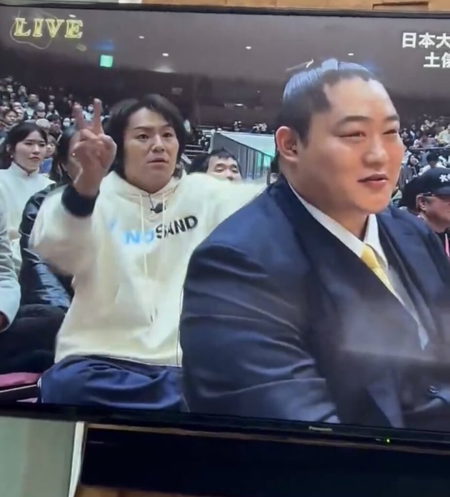 実際、狩野英孝さんはこの日に「雪ですが散歩です。今日は両国!#かのサンド」と投稿しており、両国でのロケを行っていたことが分かります。そのロケの一環として、大相撲トーナメントの会場である両国国技館に立ち寄り、テレビに映りやすい席を選んで座ったのではないでしょうか。