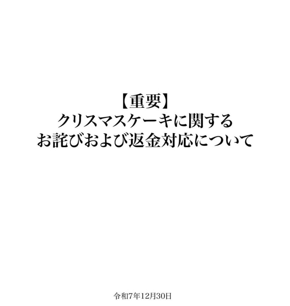 追記: 2025年12月30日に社長が返金対応する旨発表されました (謝罪あり)