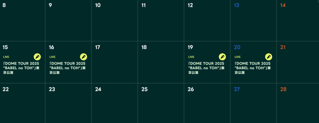 ミセス(Mrs. GREEN APPLE)のドームツアー「DOME TOUR 2025 “BABEL no TOH”」の東京ドーム4公演のうち12月20日(土)の公演のみ、開場・開演時間が1時間繰り上げられることが発表されましたね