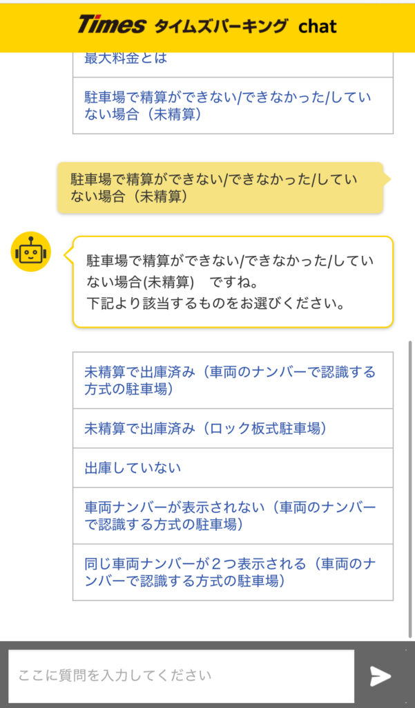 | 営業時間(有人チャット受付) | 車両ナンバーで認識する方式の駐車場の場合は 9時から18時まで有人チャットで受け付けます。 |