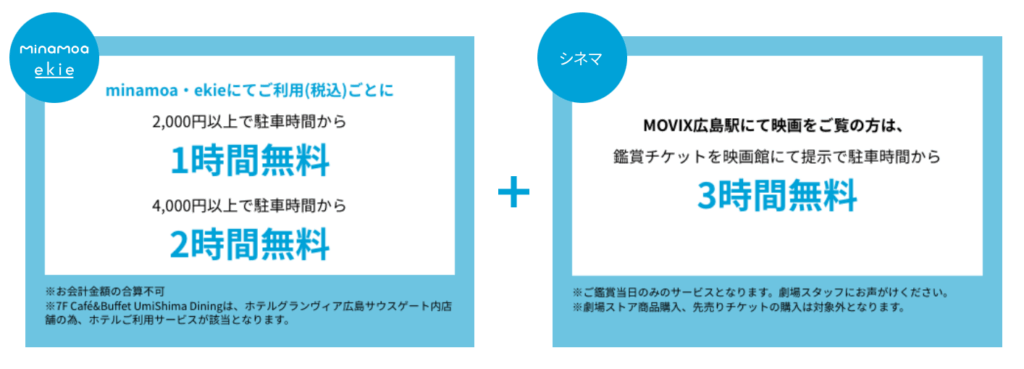 ミナモアの「駐車割引サービス」は?(公式サイト抜粋)