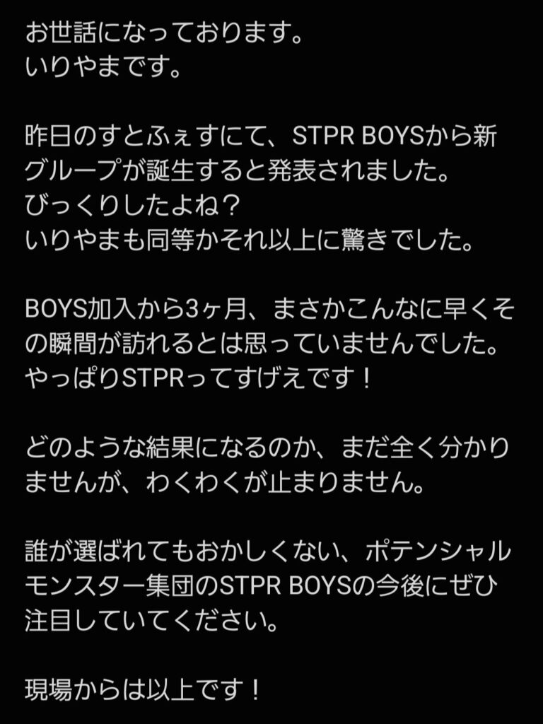 STPR BOYSの新グループが、STPR Familyの新たな魅力として、多くの人に愛されるグループになりますように!最後まで読んでいただき、ありがとうございました!
