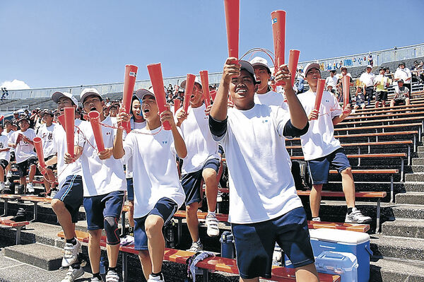日頃、練習試合をしているライバルチームともいえる魚津工高の野球部が、メガホン片手に未来富山の応援に来ていたのです。