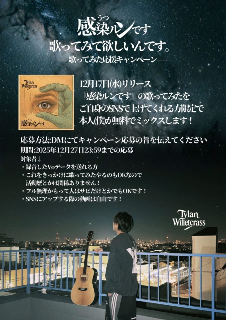 実は、Tylan Willetcrass(タイラン・ウィレットクラス)さん、昨年末にSNSで『感染ルンです』の〝歌ってみた〟を呼び掛けていました