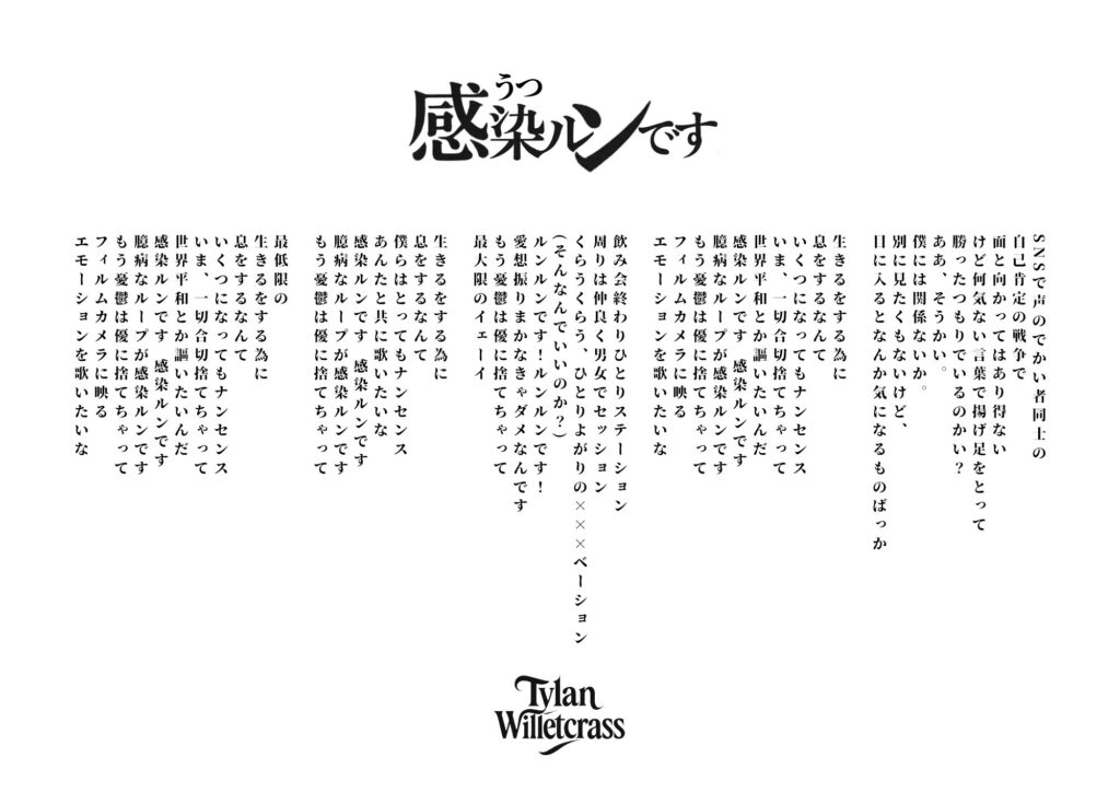 結果、「感染ルンです」が選ばれたわけですが、こうしてファンと一緒に作品を育てていくスタイルが、Tylan Willetcrassさんらしいなと思います。