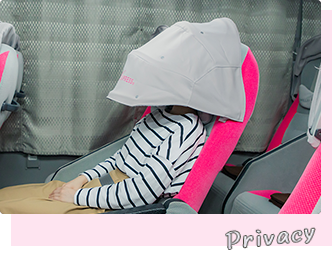 座席がピンク×グレーの車種は、小さめで顔が隠れる程普度